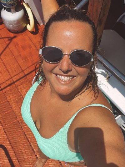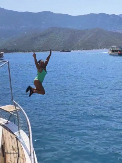 A la vuelta hicimos una nueva parada a medio camino para darnos un chapuzón y como era una zona más profunda pudimos saltar desde el trampolín del barco.
