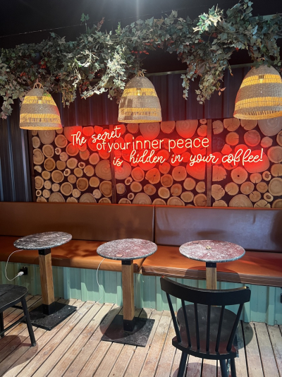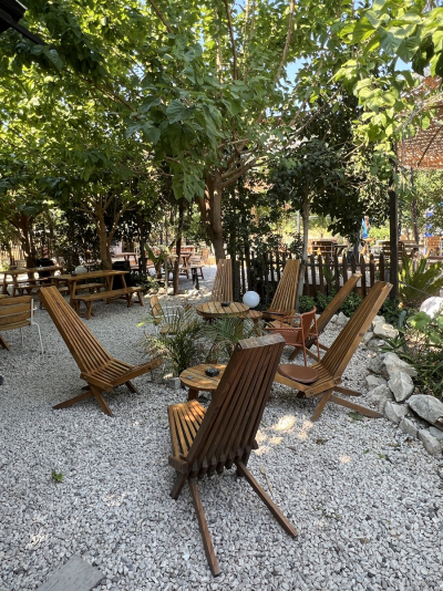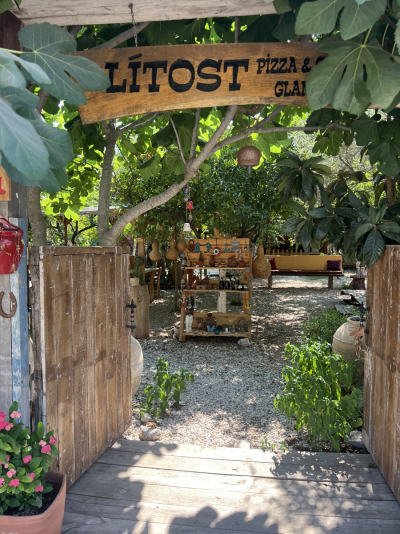 Teníamos que seguir de camino hacia la próxima parada, pero antes descubrimos la zona este de Adrasan al lado del río con muchos restaurantes, hoteles y bares que no había visto la noche antes. El ambiente parecía muy guay, y justo allí paramos a tomar café a un sitio increíble llamado Lítost, era un camping con unos bungalows hechos de madera, una zona vintage al exterior, pero muy bien pensada en cuanto a diseño y donde hay un delicioso café. La chica que lo lleva tiene todos los detalles y hace pasteles caseros que están muy ricos, aparte que es muy amable y supersimpática. Sin duda me alojaría con ella en una futura visita. También hacen noche de pizzas handmade muy ricas, según nos dijo.