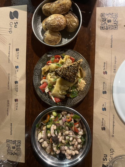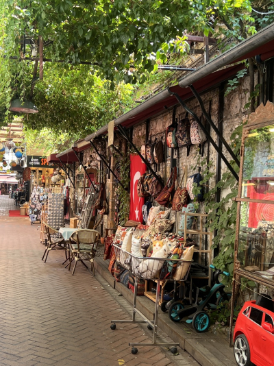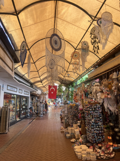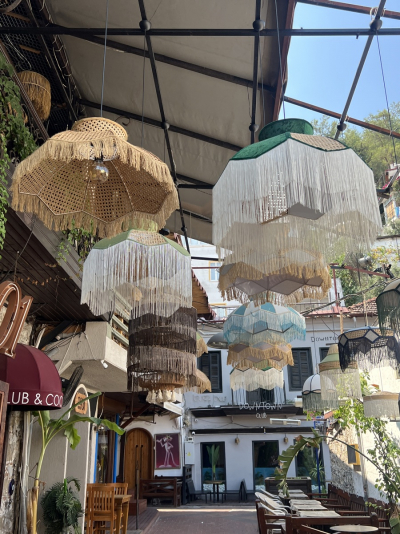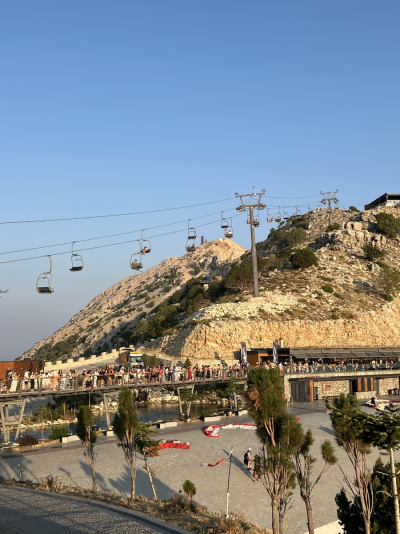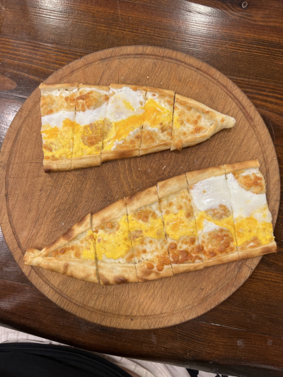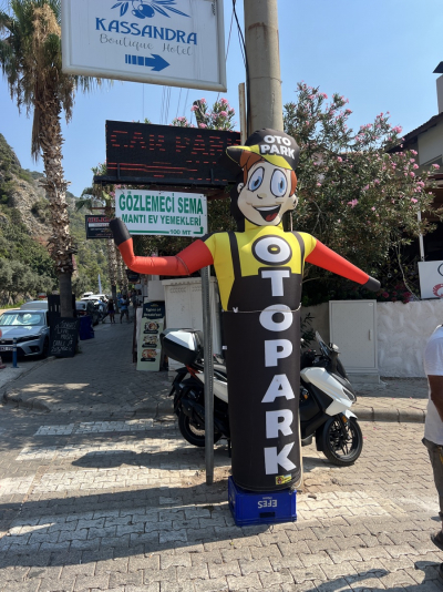 El pueblo en sí, no fue el que más me gustó, aunque probé el pide de queso y huevo que puedes encontrar en todo Turquía y está muy bueno, varios restaurantes, y carteles graciosos con muñecos hinchables que te dicen que entres con un juego de aire interno.