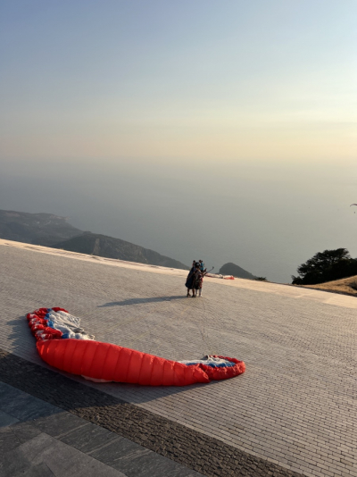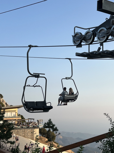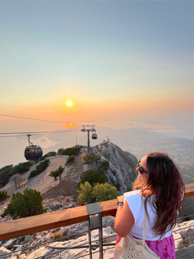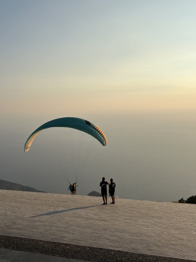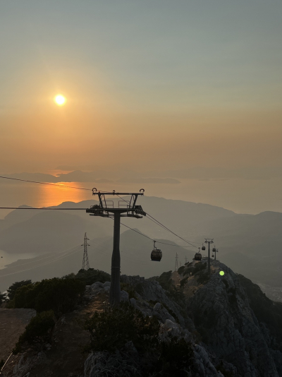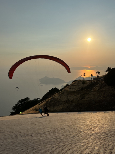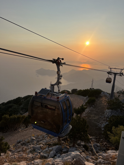 Una de las actividades más famosas por hacer en la zona es tirarse en paracaídas, puedes verlos mientras disfrutas de la playa durante todo el día. Para hacerlo hay que coger el funicular, pero también es una de las atracciones turísticas por excelencia, subes a 2000 m de altura y francamente no es apto para gente con vértigo, pues en mi cabina había una mujer que tenía y lo pasó fatal durante todo el trayecto que no os voy a mentir dura unos 20-30 minutos. Conforme vas cogiendo altura las vistas son increíbles, ves perfectamente la lengua de arena y en mi caso subí al atardecer, por lo que fue espectacular.