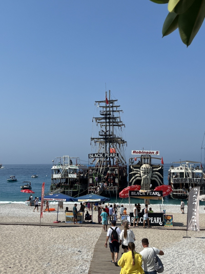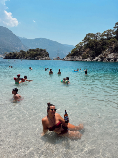 La playa de Olüdeniz es una playa preciosa de color turquesa, pero desgraciadamente la han adaptado tanto al turismo que pierde mucho. La playa grande, el agua es preciosa, pero está llena de barcos para los tours con figuras y luces, aparte de los estands donde venden los billetes. También puedes encontrar decoraciones como la puerta de buda que da al mar, que esa sí que a mí particularmente me pareció preciosa.