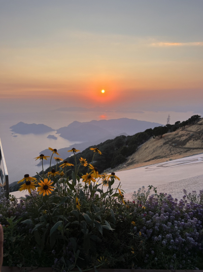 Justo para la puesta de sol se termina el horario de tirarse y la pista pasa a ser un mirador del atardecer. También hay un bar donde se puede tomar algo e incluso un restaurante un poco más arriba con el que hay que subir con un telesilla como de una estación de esquí. Lo recomiendo mucho subir, si hay un día claro las vistas son inolvidables.