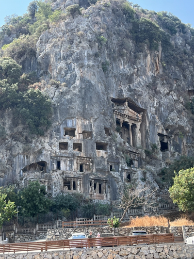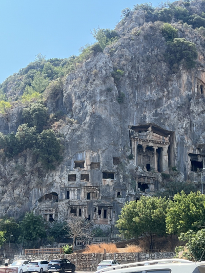 Fethiye es una de las ciudades recomendadas de la Riviera Turca, aunque gente local, me había aconsejado saltarla. Al estar al lado de Olüdeniz invertí una mañana para poder ver las tumbas llamadas Amyntas Rock Tombs que son muy bonitas, recuerda un poco Jordania porque están excavadas en las rocas.