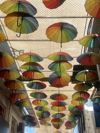 También di un pequeño paseo por la zona del centro, que como en todas estas ciudades, lo bonito del ambiente y los restaurantes son a la hora de cenar. Pero sí, es un centro bonito también con un pequeño bazar donde puedes encontrar de todo, especies, ropa, imitaciones, y las famosas calles con los paraguas que encuentras en todo el país.