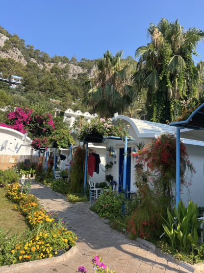 En Olüdeniz estuve 2 noches y el alojamiento escogido por su calidad precio que tampoco había muchas opciones fue el Sunmed Lodge, unos bungalows muy correctos con el típico desayuno turco incluido.